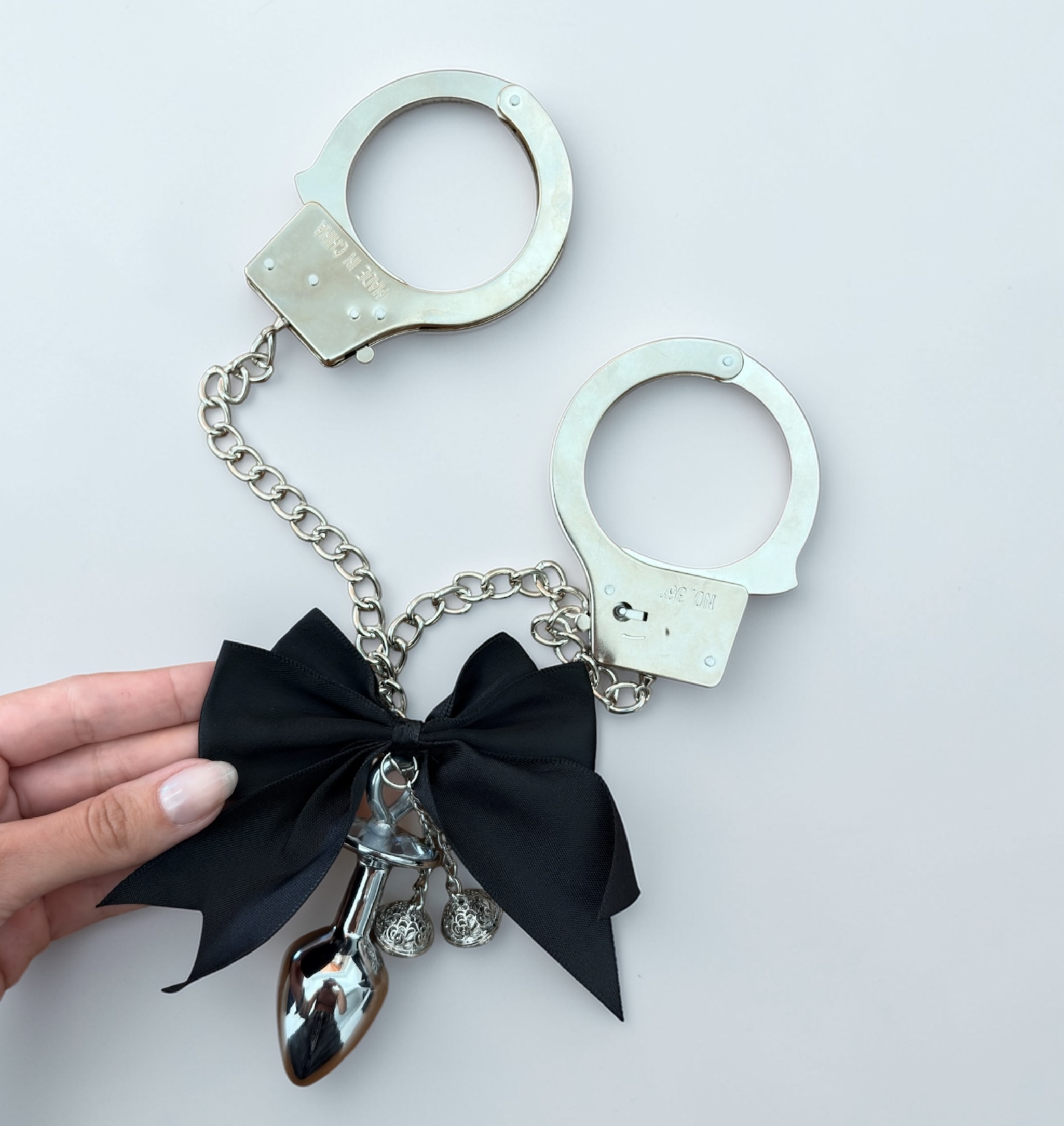 Enquanto as algemas em metal limitam os movimentos e aumentam a tensão do momento, o plug com sino adiciona um toque ousado. Cada movimento vira um convite e cada som um aviso. 🔔🔥